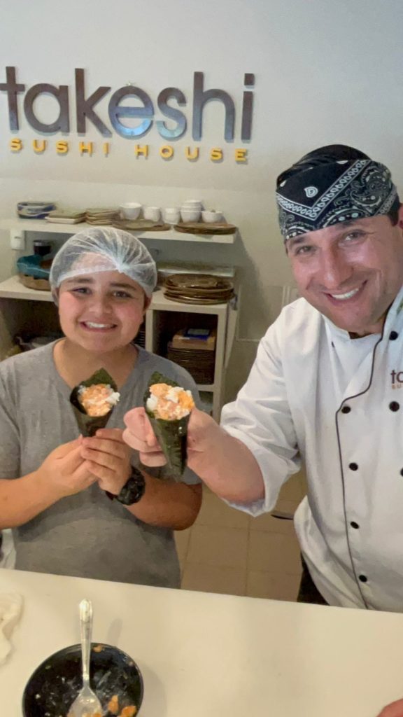 👉 A cada 15 minutos, 2 crianças poderão entrar na cozinha e preparar o seu mini temaki — totalmente de brinde!